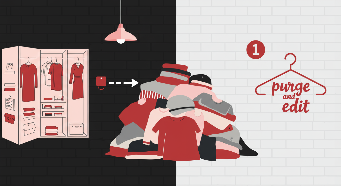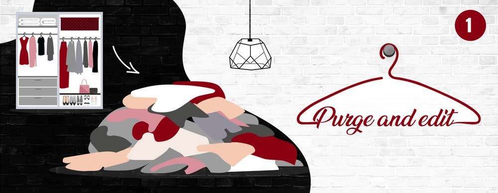 The first step to organizing your closet is to go through your belongings and purge your clothing, shoes, accessories, and any other items. See if any of them match these criteria: