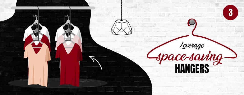 Space-saving hangers can be a godsend for closets with limited hanging space. If you haven't already, swap your mismatched wire and plastic hangers with slender hangers that will allow you to fit more onto rods. It’s even better if you want them in similar colors, or assign a color for each type of clothing, to add more style. Just save the wooden hangers for heavier items and also padded hangers for winter sweaters. Vertical hangers or those with tiers are fabulous for stacking lighter pieces of clothing and even for hanging several pairs of pants. It’s a small and inexpensive investment that can greatly impact on the overall look and functionality of your wardrobe.
