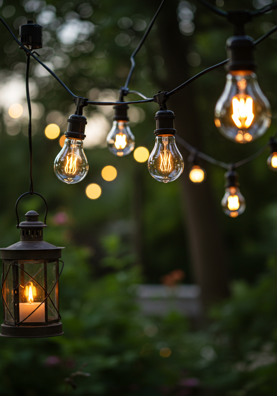 One way to embrace outdoor living and make your space an extension of your living room is to invest in additional lighting. Luminous decorations, such as floor or table lamps and lanterns, will not only brighten up your backyard but will also add interest to it. Just make sure to choose lamps that are designed for the outdoors and are weatherproof. Another brilliant idea is hanging pretty string lights across an entire space or along a fence to give your yard a rustic vibe.