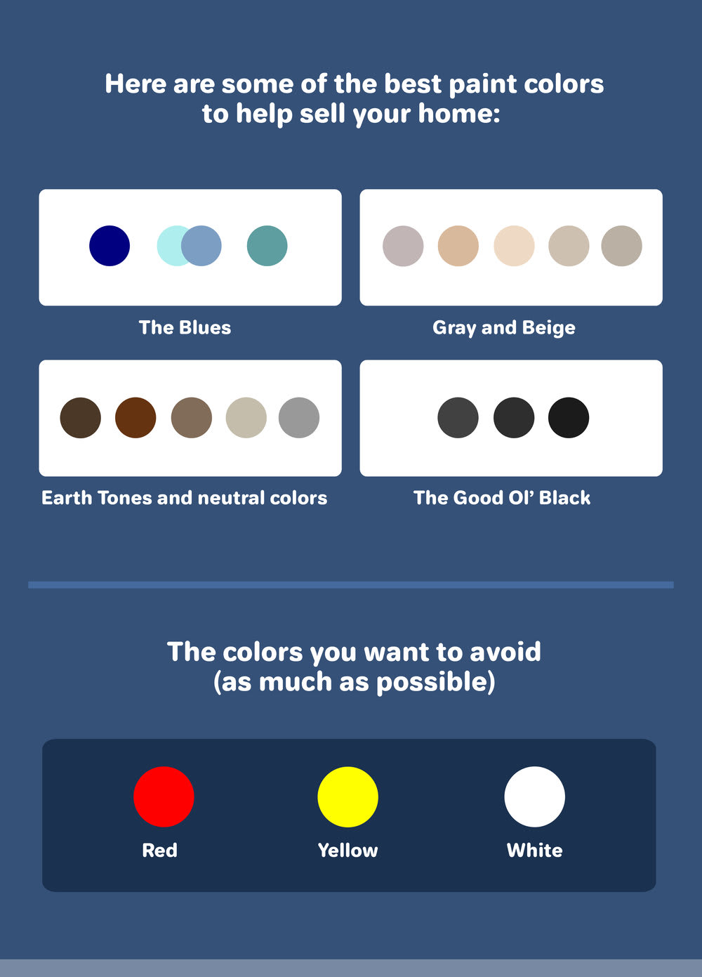 The colors that could be harmful to your home's sale price include: