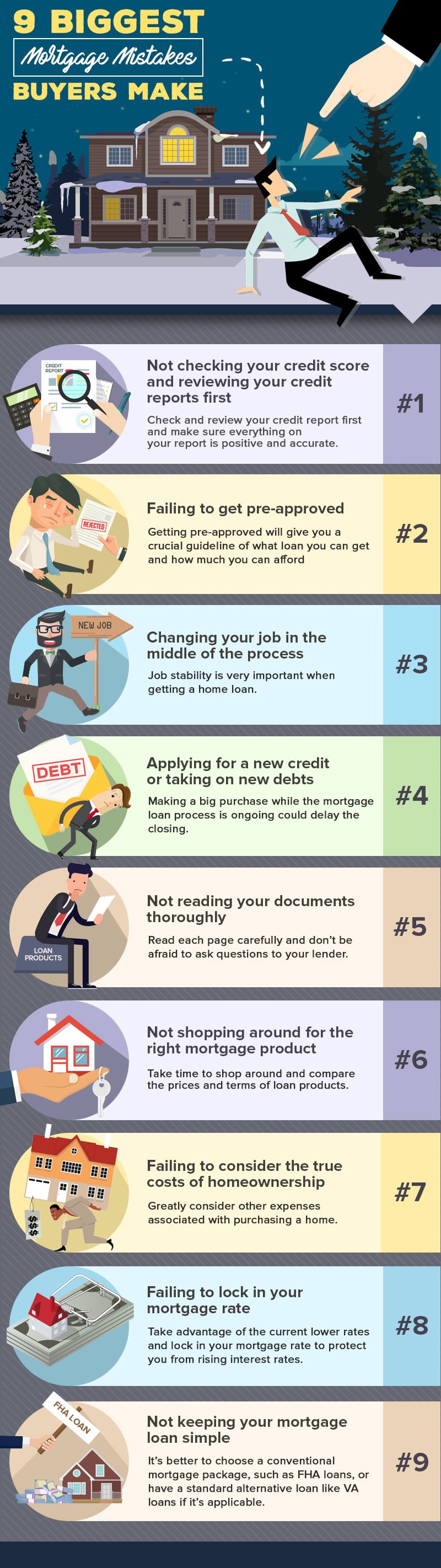 Here are nine of the most common mortgage blunders that buyers make. Make sure you think about how you could avoid them for you to have a pleasant and meaningful home buying experience.