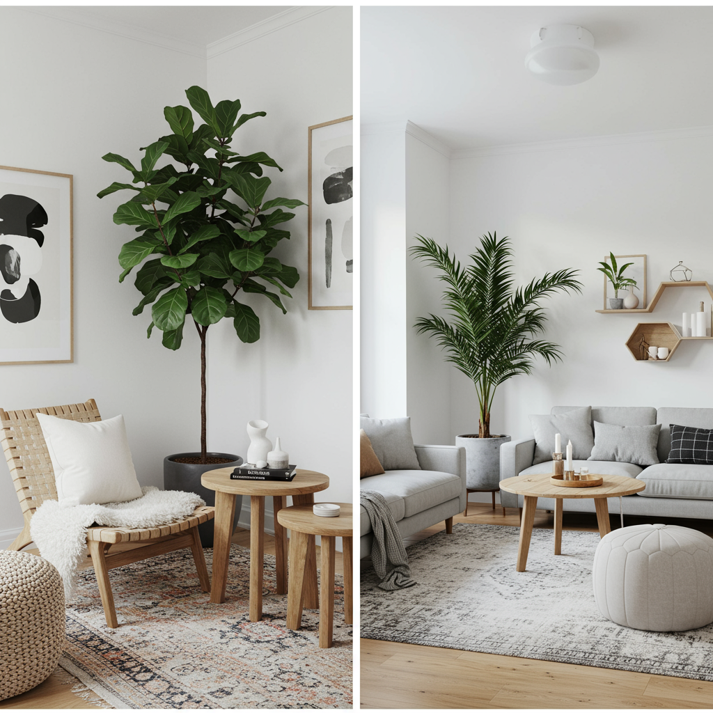 Tall indoor plants and trees like palm trees, fiddle leaf fig, olive tree, or Monstera, can be a great statement or conversational piece in any room. They can add so much more floor-to-ceiling style to any space. And since trees are natural, living furniture pieces, they can complete the look of the home with the most organic feel and spruce up any space that needs livening.