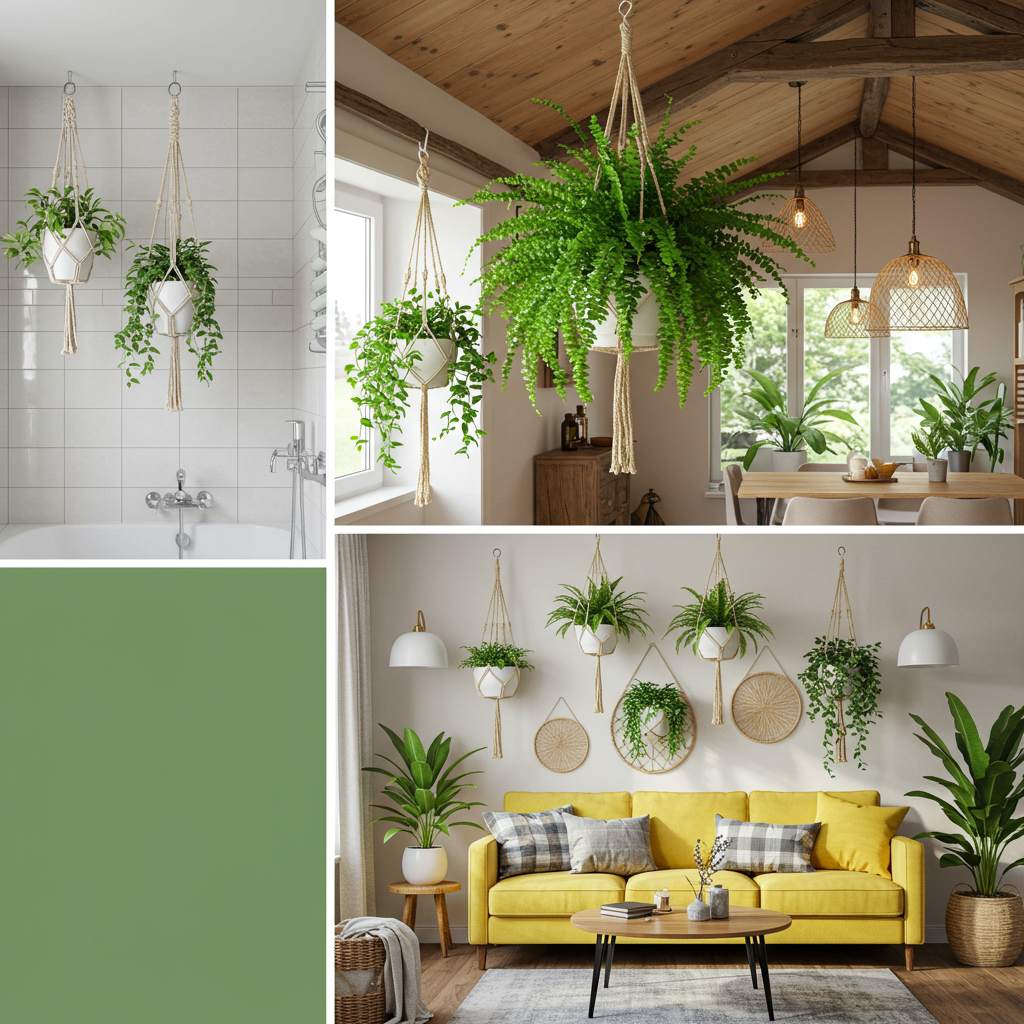 You can opt for some macramé plant hangers if you want that boho-chic look. Or, simply use a hook on the coat rack in your entryway or mudroom to add a hanging planter as an instant accessory.