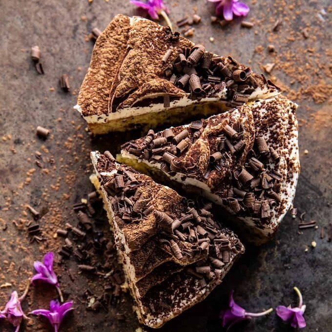 A Vanilla Tiramisu Cake…for your weekend baking. Vanilla-infused sour cream cake swirled with chocolate chunks and soaked in sweet coffee syrup. This cake is no fuss, easy to mix up, and SO DELICIOUS! Every bite is layered with chocolate and moist coffee-soaked vanilla cake crumbs. Finish the cake with the creamiest whipped mascarpone frosting and a heavy dusting of cocoa powder for that classic tiramisu finish. Bonus? It’s simpler to make than you’d think, and so very pretty…with very little effort.