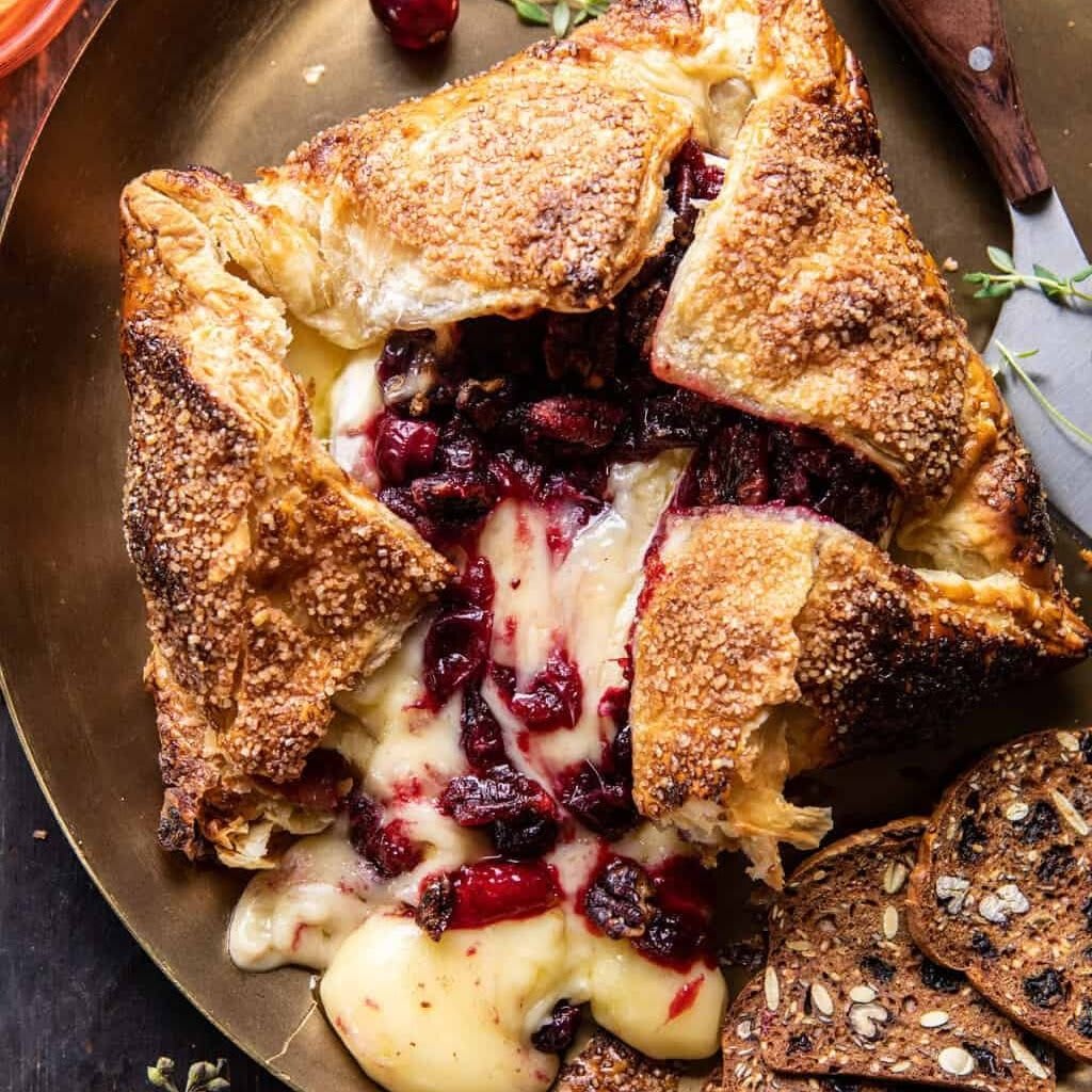 Pastry Wrapped Cranberry Baked Brie, the holiday appetizer. It’s quick, easy, and most importantly…incredibly delicious. Store-bought puff pastry wrapped around creamy brie cheese with homemade cranberry sauce and toasted pecans. Then baked until the pastry is golden and the brie warm and melty. A truly mouth-watering appetizer that’s perfect for holiday entertaining. It’s festive, easy to prepare, and always a crowd favorite.