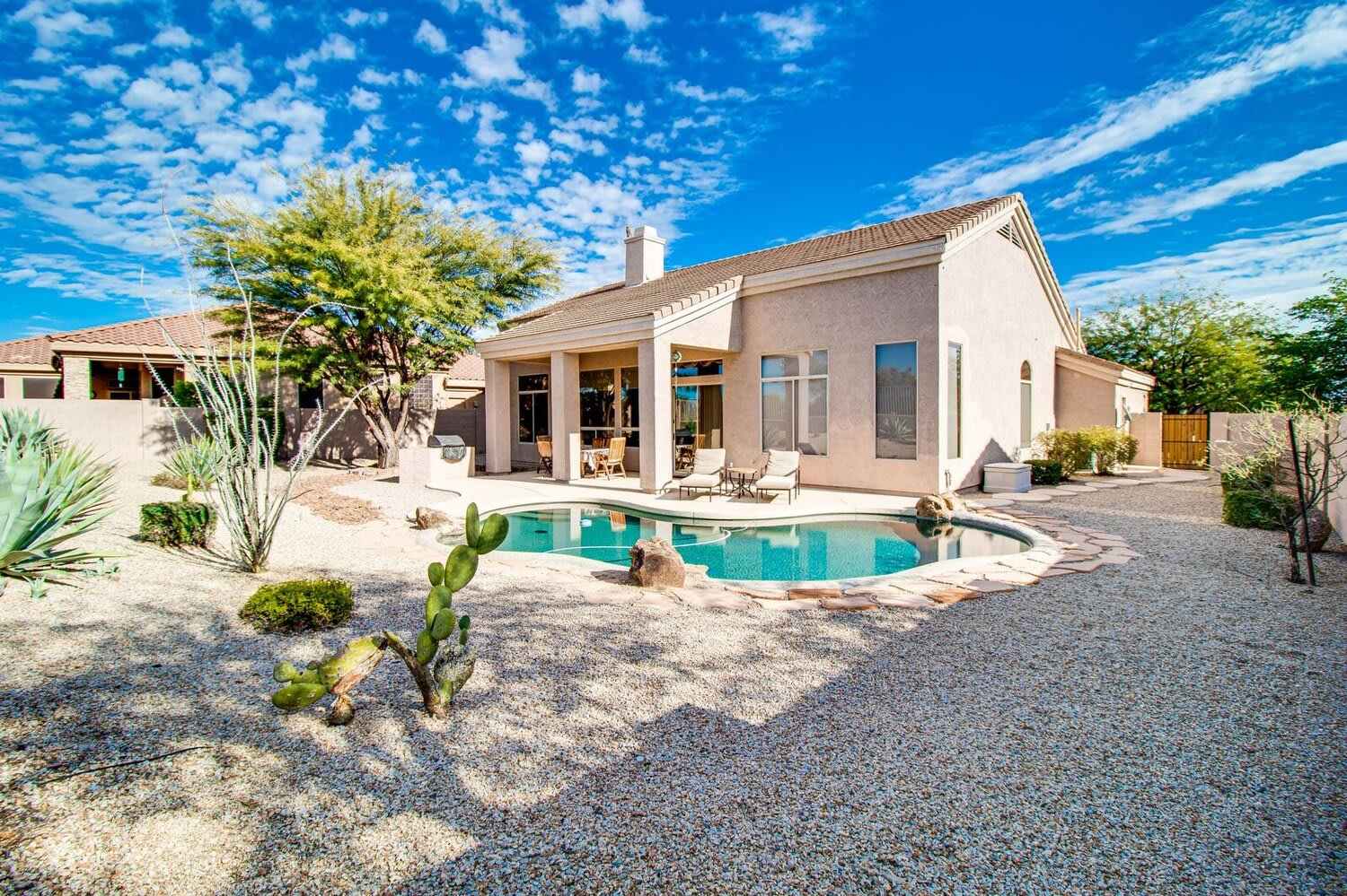 The backyard is an entertainer's dream with jaw-dropping views of Troon Mountain. The sparkling PebbleTec pool is the perfect place to relax during the hot summer days. There is also a large covered patio and a built-in BBQ! Both the front and backyard have easy desert landscaping. Incredible North Scottsdale location with upscale dining, golf, and boutique shopping close by. Don't miss this amazing home!