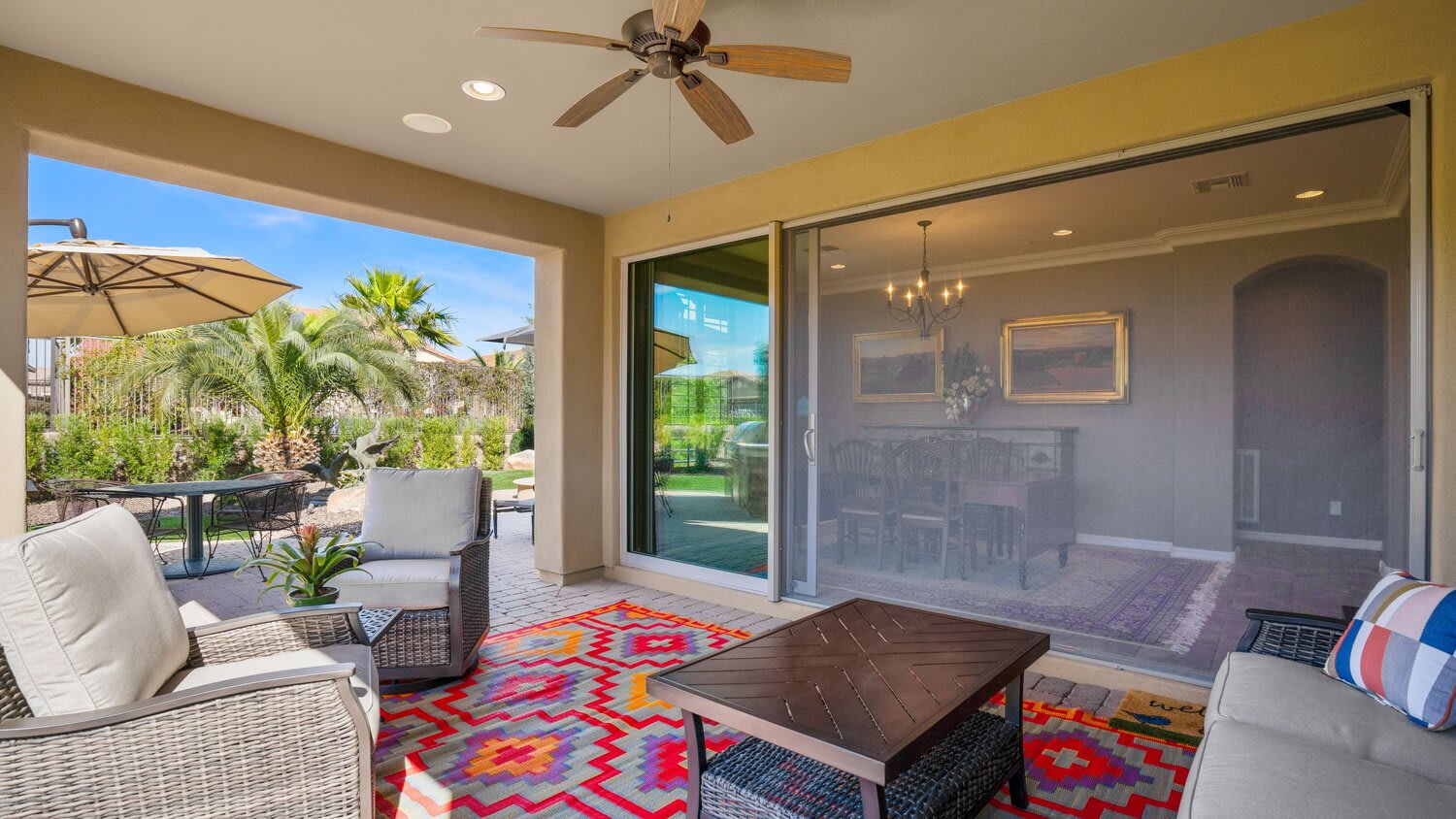 The professionally landscaped backyard is an entertainer’s dream and includes custom pavers, a built-in BBQ and gas fire pit. Additional features include PREPAID SOLAR, a new a/c mini split in the master suite, central vacuum, security system, and extra work space in the laundry room. The attached 2-car garage has superb granite epoxy flooring. Experience resort-style active adult living at Trilogy! Play a round or two of golf at the Gary Panks-designed Trilogy Golf Course. Enjoy TWO luxurious resort clubs with pools, fitness centers, and tennis courts. Dine at the highly-rated V‘s Taproom or relax at the wonderful Alvea Spa. Come and see this amazing home before it hits the MLS!