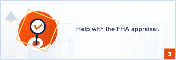 A buyer can hire his or her own appraiser to evaluate your home. However, the FHA only relies on reports by its approved appraisers to help determine the value and condition of your property. This FHA-endorsed appraisal will be used to make the final loan decision. You can make the appraiser's job easier by providing them easy access to all areas of your home, including the attics, basement, crawl spaces, and other harder-to-reach places since they usually need to be photographed. |