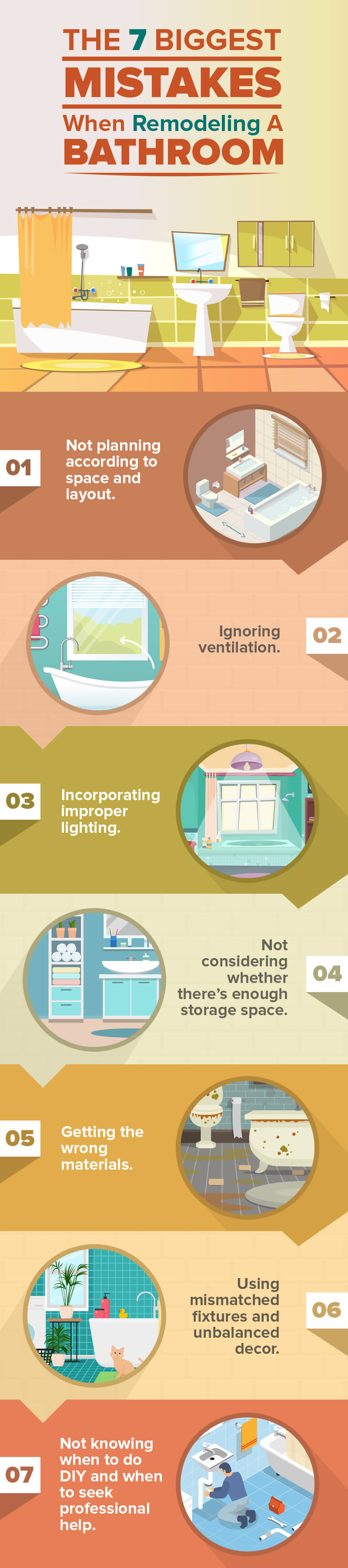 5. Getting the wrong materials.Remodeling can be an endless battle between functionality and design. Remember that a bathroom deals with more moisture than any other part of the house, so you have to take into consideration the right materials you will use for the job. Avoid using porous materials that are highly susceptible to mold, distortion, and will keep moisture.