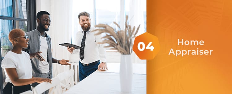 Make sure you don't confuse the home appraiser with the home inspector. The home appraiser determines the value of the property for sale through an unbiased and professional evaluation called the home appraisal, which is required by lenders before issuing a mortgage. An appraiser will consider factors such as the size of the home, exterior and interior conditions, and will compare it to similar home sales in the neighborhood before determining the home’s value.