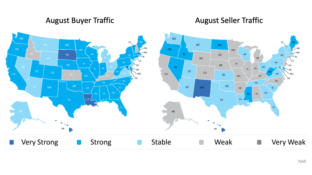 Recent buyer and seller activity data from the National Association of Realtors (NAR) helps answer that question. When we take NAR’s buyer activity data and compare it to the seller traffic during the same timeframe, we can see buyer demand continues to outpace seller activity by a wide margin. In other words, the demand for homes is significantly greater than the current supply that’s available to buy (see maps below):