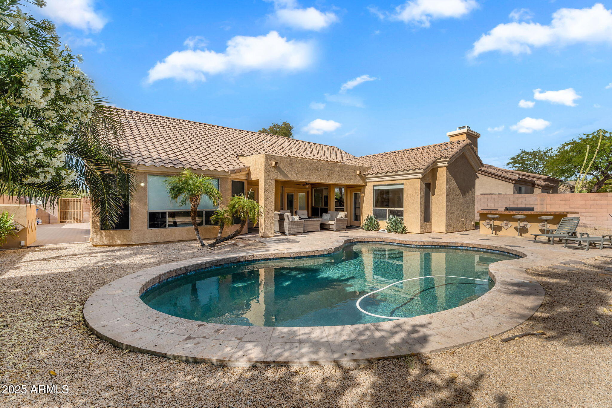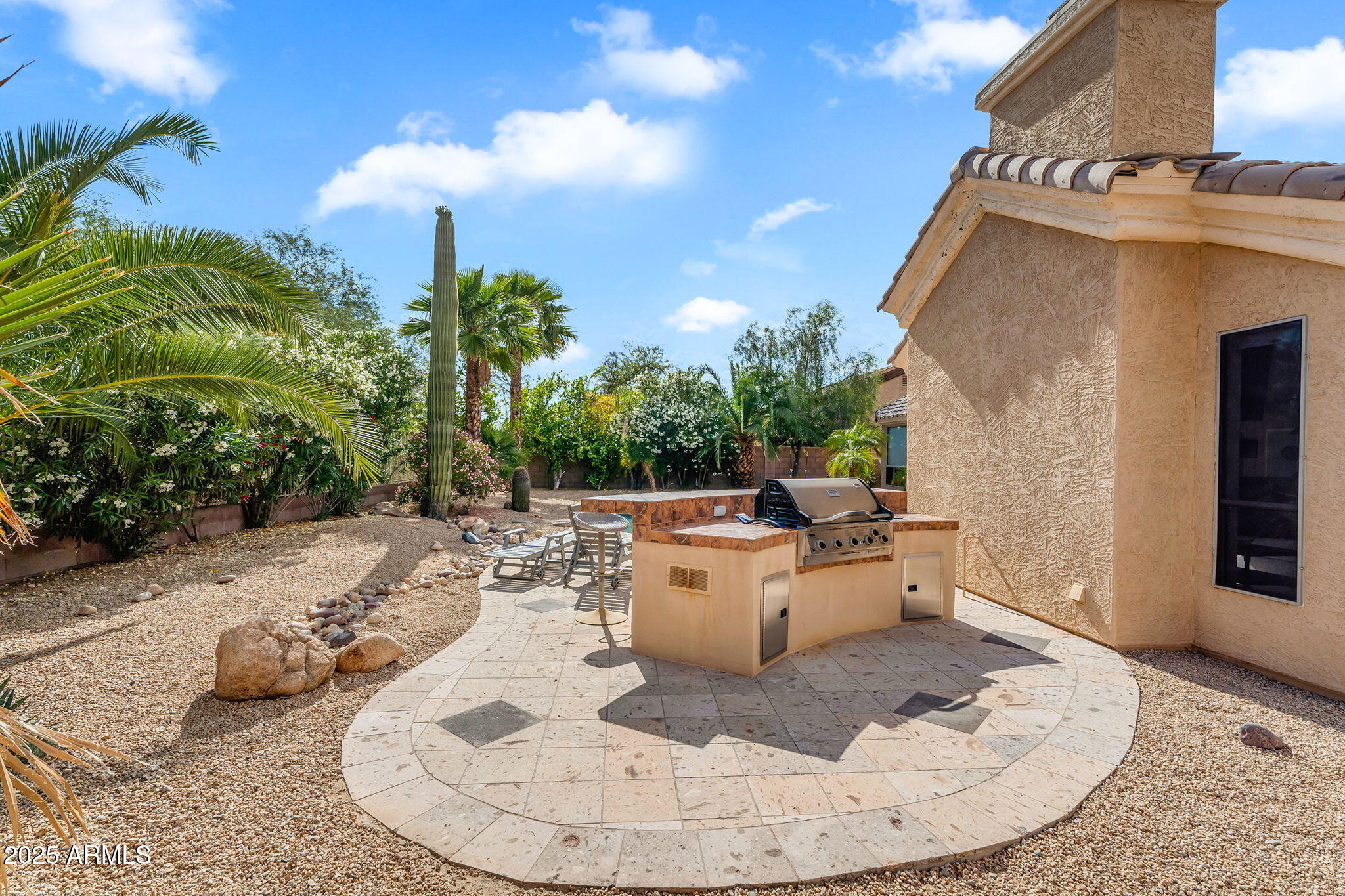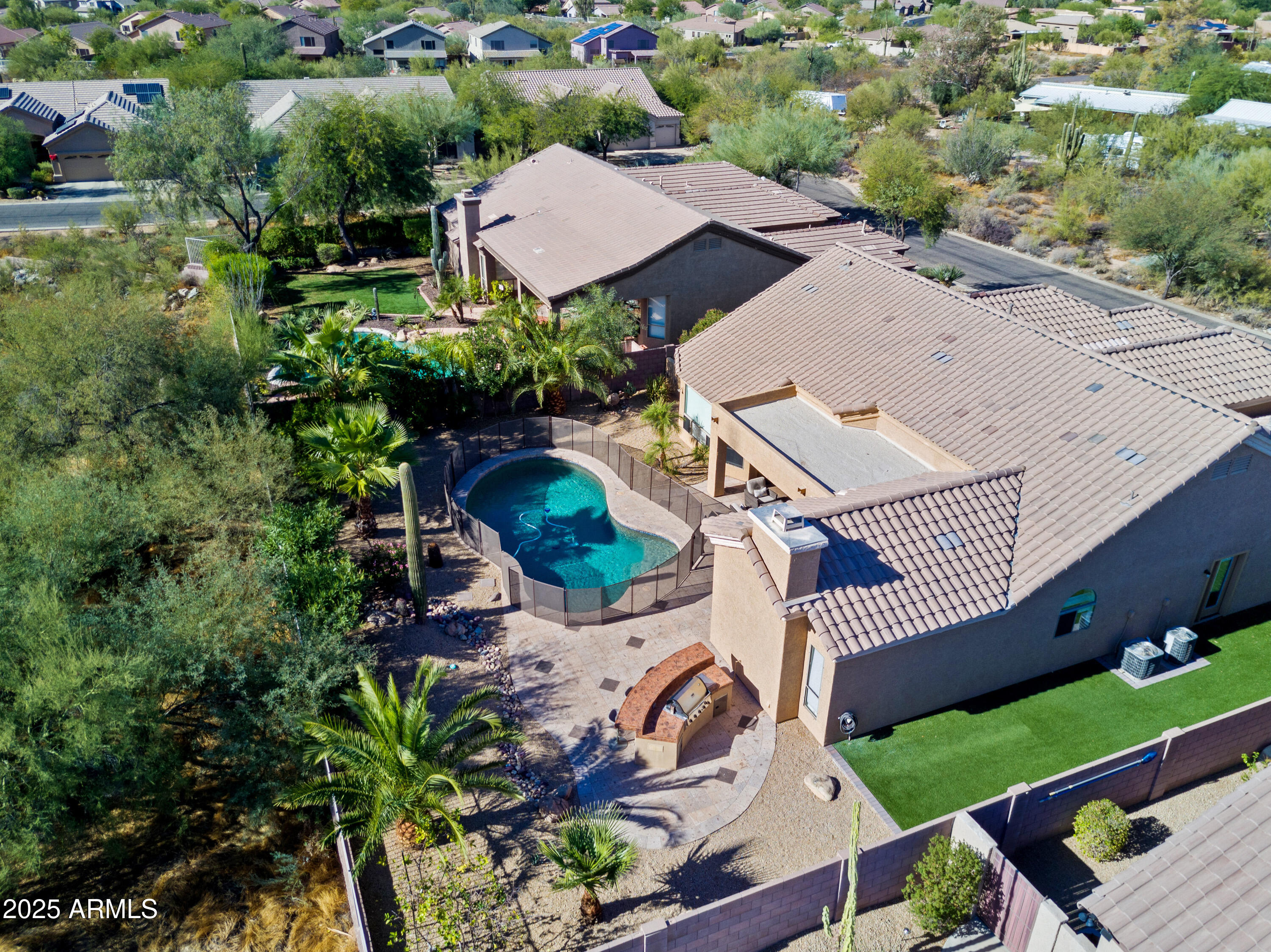 Hi there - I'm 4809 E. Red Range Way, your future favorite Cave Creek hideaway! I sit at the quiet cul-de-sac corner of Dove Valley Estates, backing to a wash with no rear neighbors - your own peaceful desert backdrop every day. Built in 1998 and lovingly reimagined, I now sport designer lighting, newer flooring throughout, and a split layout that truly separates living and rest zones. Slide over to the heart of my home: a gourmet kitchen with modern finishes and a built‑in wine fridge just waiting to chill that perfect glass. My bathrooms are fully upgraded too clean, sleek, and stylish. There's even a warm fireplace to cozy up beside. Outside, I transform into a personal oasis: a heated saltwater pool, a built‑in BBQ grill island, plus turf lawn for tossing a Fr
